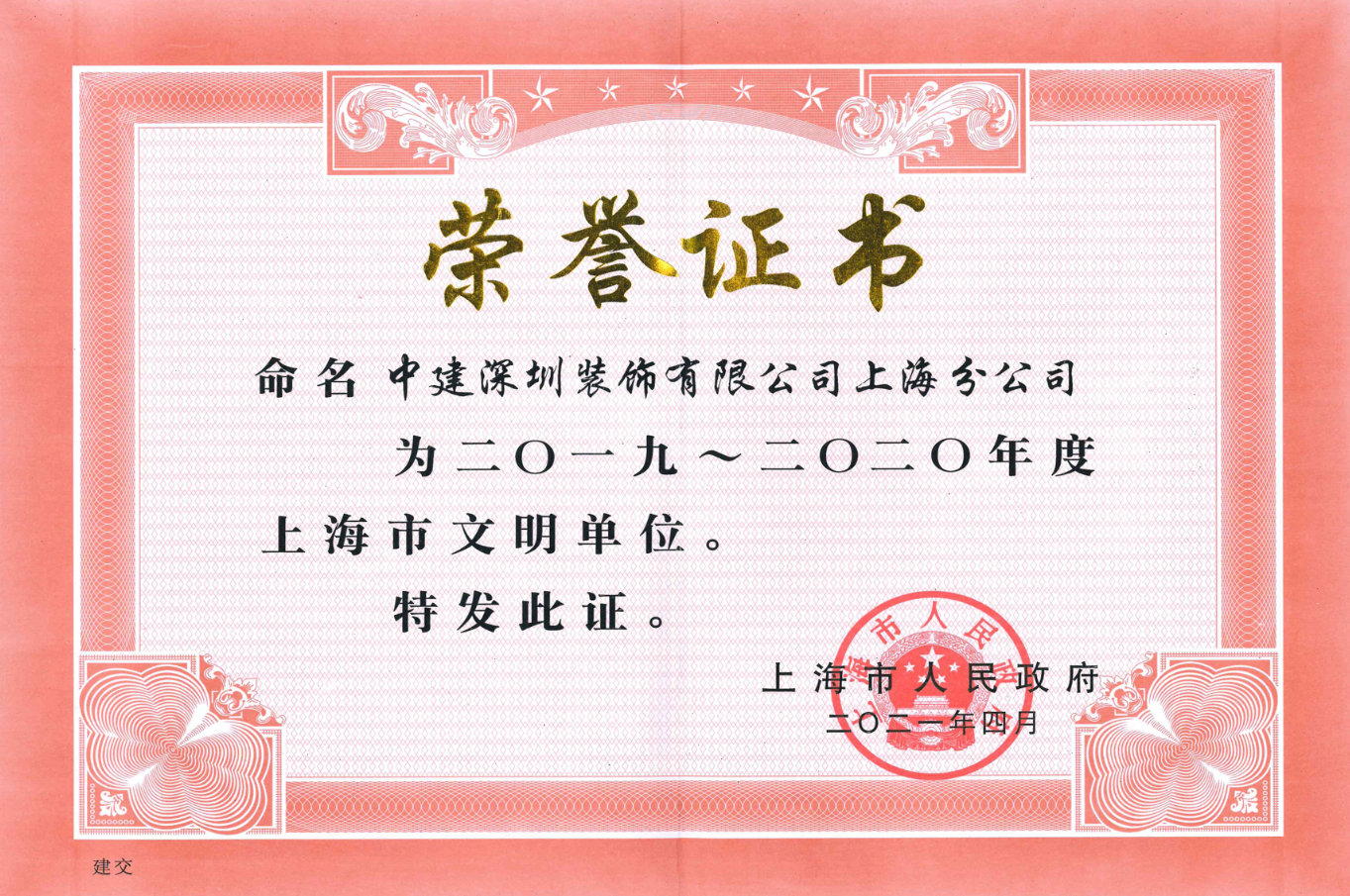 近日 草莓影视高清,中建深装上海分公司荣获“2019-2020年度上海市文明单位” 草莓影视免费观看,这也是中建深装连续6届(12年)获此殊荣。