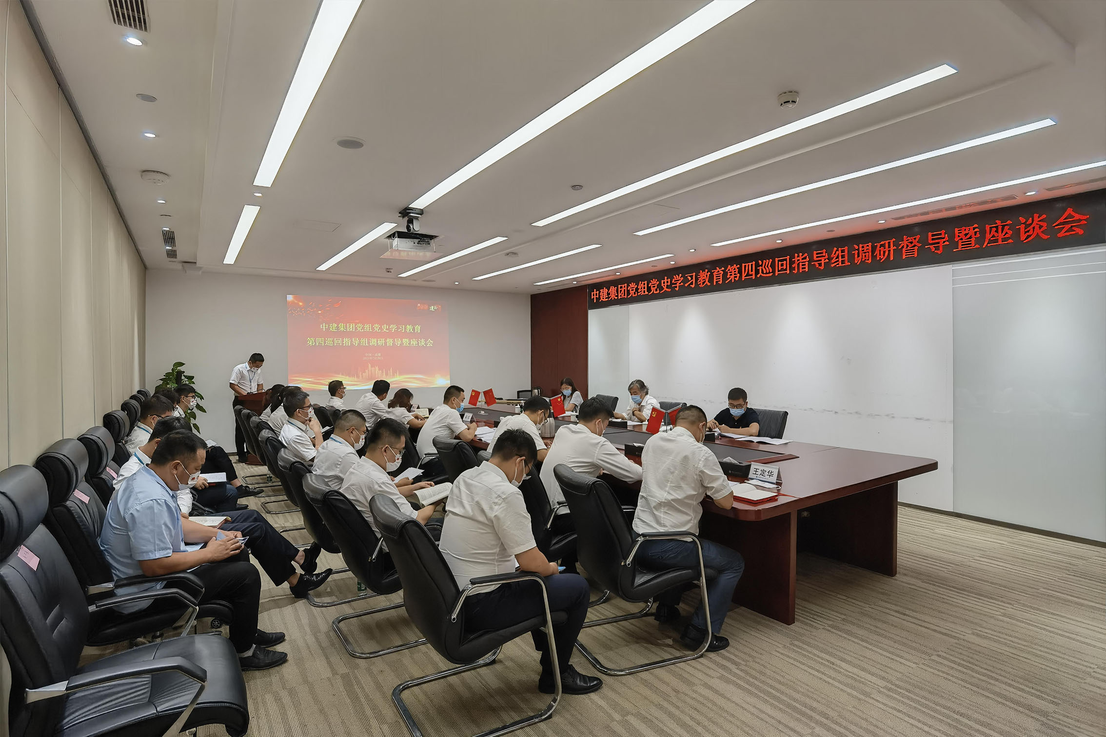 近日,中建集团党组党史学习教育第四巡回指导组副组长叶林一行莅临中建深装西南分公司调研督导并开展座谈会,中建深装西南分公司副总经理兼西南分公司党总支书记,经理杨雨霏及分公司领导班子成员 草莓影视免费观看,部门经理与项目经理代表,党员代表共计26人参会。